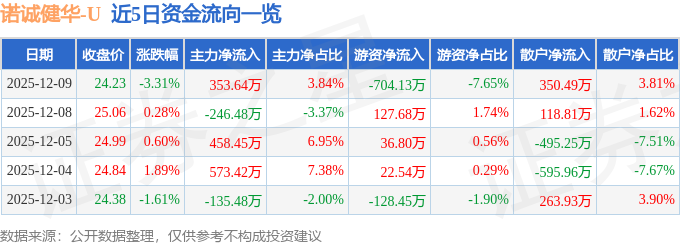 证券之星消息,截至2025年12月9日收盘,诺诚健华(688428)报收于24.23元,下跌3.31%,换手率1.39%,成交量3.73万手,成交额9208.5万元。