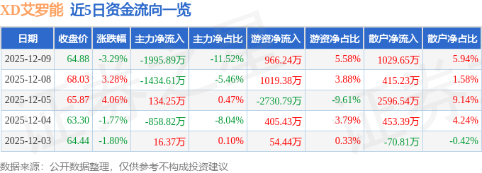 12月9日的资金流向数据方面,主力资金净流出1995.89万元,占总成交额11.52%,游资资金净流入966.24万元,占总成交额5.58%,散户资金净流入1029.65万元,占总成交额5.94%。
