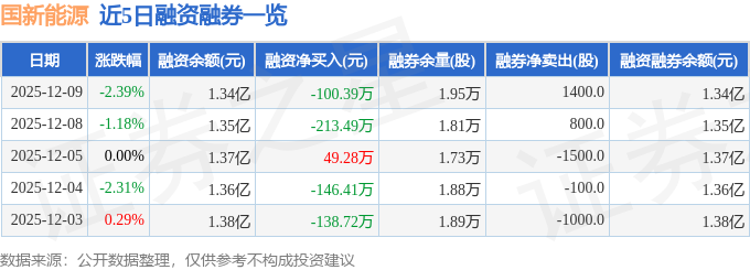国新能源融资融券信息显示,融资方面,当日融资买入840.63万元,融资偿还941.02万元,融资净偿还100.39万元。融券方面,融券卖出1400.0股,融券偿还0.0股,融券余量1.95万股,融券余额6.38万元。融资融券余额1.34亿元。