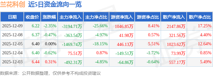 证券之星消息,截至2025年12月9日收盘,兰花科创(600123)报收于6.22元,下跌2.35%,换手率1.35%,成交量19.85万手,成交额1.24亿元。
