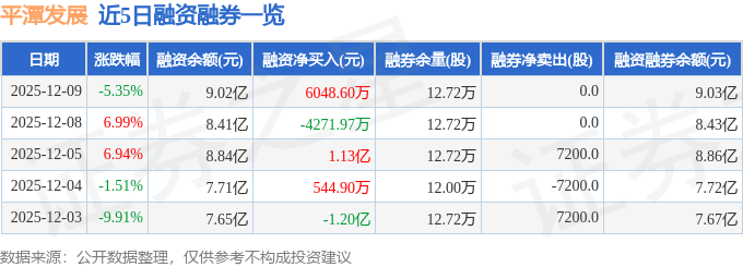 证券之星消息,截至2025年12月9日收盘,平潭发展(000592)报收于12.02元,下跌5.35%,换手率23.41%,成交量448.23万手,成交额54.63亿元。