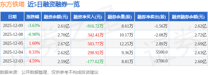 证券之星消息,截至2025年12月9日收盘,东方铁塔(002545)报收于17.52元,下跌3.63%,换手率0.93%,成交量10.51万手,成交额1.85亿元。