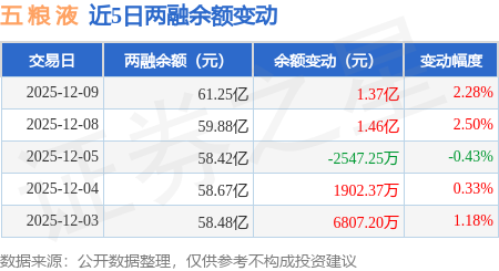 证券之星消息,12月9日,五 粮 液(000858)融资买入3.26亿元,融资偿还1.9亿元,融资净买入1.36亿元,融资余额60.43亿元,当日融资净买入排名第25,近20个交易日中有12个交易日出现融资净买入。