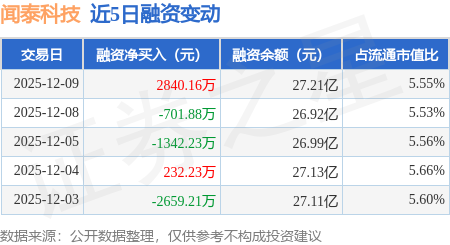 证券之星消息,12月9日,闻泰科技(600745)融资买入2.25亿元,融资偿还1.97亿元,融资净买入2840.16万元,融资余额27.21亿元。