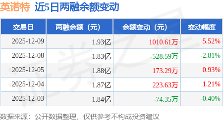证券之星消息,12月9日,英诺特(688253)融资买入1450.24万元,融资偿还439.63万元,融资净买入1010.61万元,融资余额1.93亿元。