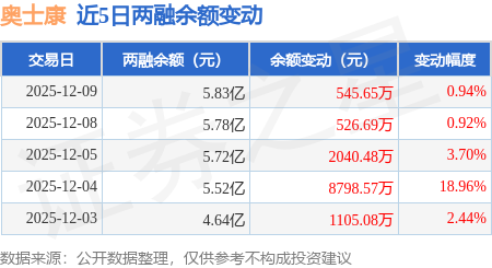 证券之星消息,12月9日,奥士康(002913)融资买入4135.45万元,融资偿还3599.89万元,融资净买入535.56万元,融资余额5.83亿元,近3个交易日已连续净买入累计3123.93万元,近20个交易日中有13个交易日出现融资净买入。
