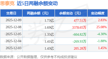 证券之星消息,12月9日,思泰克(301568)融资买入6490.34万元,融资偿还6012.83万元,融资净买入477.51万元,融资余额1.73亿元,近20个交易日中有11个交易日出现融资净买入。