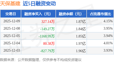 证券之星消息,12月9日,天保基建(000965)融资买入2528.33万元,融资偿还2201.19万元,融资净买入327.14万元,融资余额1.87亿元。