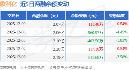 证券之星消息,12月9日,欧科亿(688308)融资买入1227.76万元,融资偿还1116.28万元,融资净买入111.48万元,融资余额2.07亿元,近20个交易日中有11个交易日出现融资净买入。