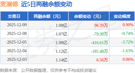 证券之星消息,12月9日,麦澜德(688273)融资买入558.21万元,融资偿还461.82万元,融资净买入96.39万元,融资余额1.08亿元。