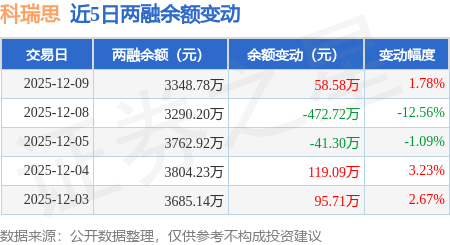 证券之星消息,12月9日,科瑞思(301314)融资买入584.5万元,融资偿还525.92万元,融资净买入58.58万元,融资余额3348.78万元,近20个交易日中有11个交易日出现融资净买入。