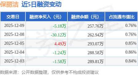 证券之星消息,12月9日,保丽洁(920802)融资买入4.21万元,融资偿还9.39万元,融资净卖出5.18万元,融资余额257.76万元。
