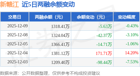 证券之星消息,12月9日,新赣江(920367)融资买入166.23万元,融资偿还171.86万元,融资净卖出5.63万元,融资余额1318.41万元。