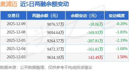 证券之星消息,12月9日,奥浦迈(688293)融资买入259.05万元,融资偿还277.12万元,融资净卖出18.06万元,融资余额9076.57万元。
