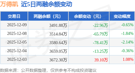 证券之星消息,12月9日,万得凯(301309)融资买入41.0万元,融资偿还63.96万元,融资净卖出22.96万元,融资余额3491.88万元。