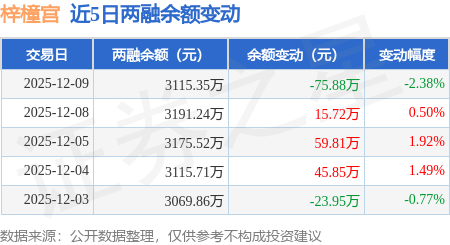 证券之星消息,12月9日,梓橦宫(920566)融资买入114.91万元,融资偿还190.79万元,融资净卖出75.88万元,融资余额3115.35万元。