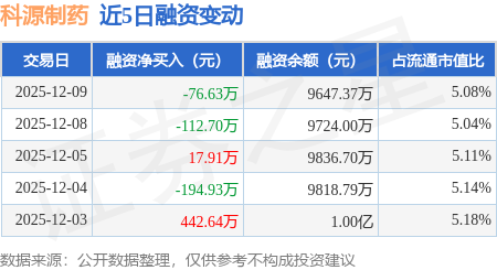 证券之星消息,12月9日,科源制药(301281)融资买入278.75万元,融资偿还355.38万元,融资净卖出76.63万元,融资余额9647.37万元。