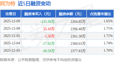 证券之星消息,12月9日,阿为特(920693)融资买入54.48万元,融资偿还186.04万元,融资净卖出131.56万元,融资余额2264.85万元。