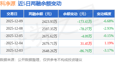 证券之星消息,12月9日,科净源(301372)融资买入101.72万元,融资偿还275.15万元,融资净卖出173.43万元,融资余额2423.93万元。