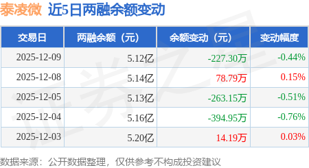 证券之星消息,12月9日,泰凌微(688591)融资买入3024.46万元,融资偿还3251.75万元,融资净卖出227.3万元,融资余额5.12亿元。