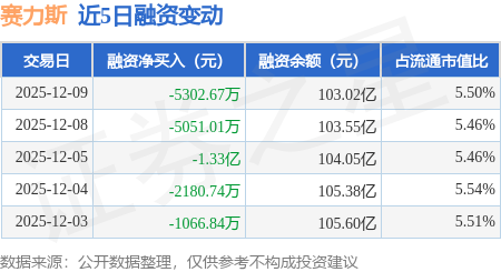 证券之星消息,12月9日,赛力斯(601127)融资买入3.04亿元,融资偿还3.57亿元,融资净卖出5302.67万元,融资余额103.02亿元。