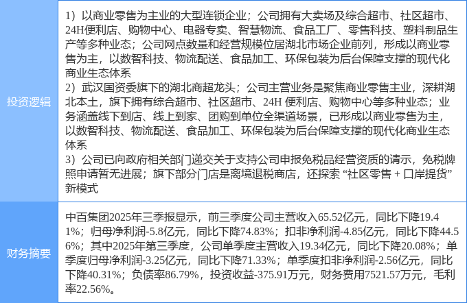 证券之星消息,中百集团12月10日涨停收盘,收盘价8.49元。该股于9点35分涨停,2次打开涨停,截止收盘封单资金为7990.28万元,占其流通市值1.44%。