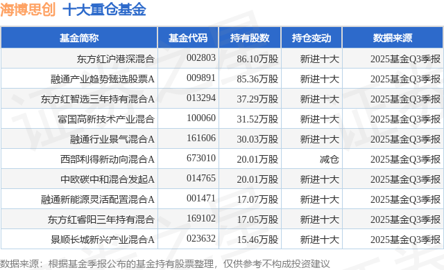 重仓海博思创的前十大公募基金请见下表: