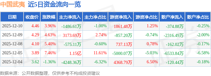 证券之星消息,截至2025年12月10日收盘,中国武夷(000797)报收于4.46元,上涨3.96%,换手率21.67%,成交量340.39万手,成交额14.87亿元。