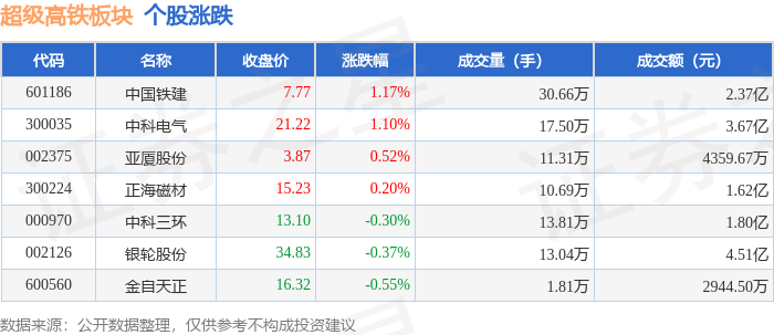 从资金流向上来看,当日超级高铁板块主力资金净流出2937.66万元,游资资金净流出1930.28万元,散户资金净流入4867.94万元。超级高铁板块个股资金流向见下表:
