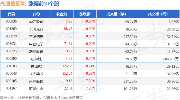 从资金流向上来看,当日光通信板块主力资金净流出15.85亿元,游资资金净流出7.81亿元,散户资金净流入23.67亿元。光通信板块个股资金流向见下表: