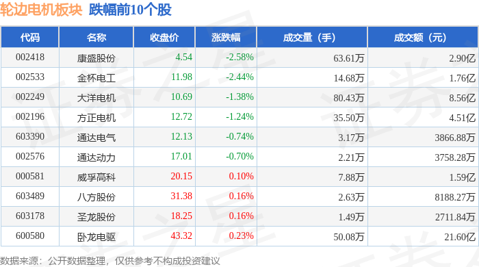 从资金流向上来看,当日轮边电机板块主力资金净流出2.61亿元,游资资金净流入1.17亿元,散户资金净流入1.44亿元。轮边电机板块个股资金流向见下表: