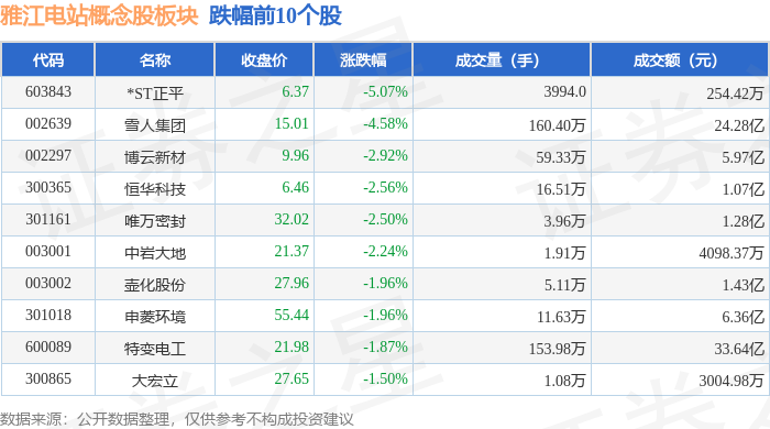 从资金流向上来看,当日雅江电站概念股板块主力资金净流出10.18亿元,游资资金净流出3325.43万元,散户资金净流入10.51亿元。雅江电站概念股板块个股资金流向见下表: