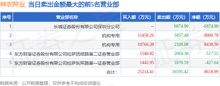 证券之星消息,沪深交易所2025年12月10日公布的交易公开信息显示,神农种业(300189)因日涨幅达到15%的前5只证券,日换手率达到30%的前5只证券登上龙虎榜。此次是近5个交易日内第1次上榜。