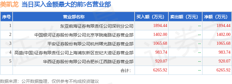 证券小知识:龙虎榜是交易所披露的竞价交易公开信息,现身龙虎榜的个股都是当日最为活跃的个股,是投资者日常重点关注的数据。交易所公布当日买入金额和卖出金额前五名的席位,其中一些席位代表特殊意义,如机构专用席位是指基金专用席位、券商自营专用席位、社保专用席位、券商理财专用席位、保险机构专用席位、保险机构租用席位、QFII专用席位等机构投资者买卖证券的专用通道和席位。深股通专用、沪股通专用为北向资金的交易席位。从龙虎榜数据可以发现和研究机构、游资和散户的资金动向。一些营业部席位经常上榜,市场知名度较高,投资者整理代表散户、游资、量化等不同资金的营业部席位。