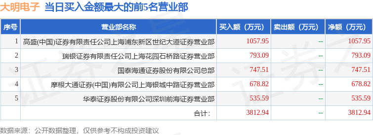 证券之星消息,沪深交易所2025年12月10日公布的交易公开信息显示,大明电子(603376)因有价格涨跌幅限制的日换手率达到20%的前五只证券登上龙虎榜。此次是近5个交易日内第2次上榜。
