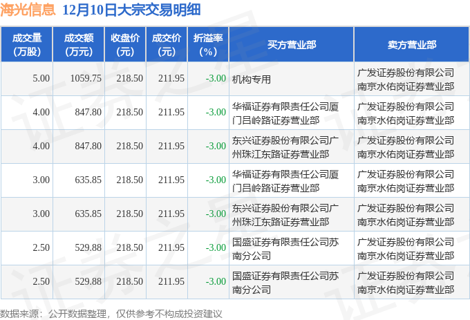 证券之星消息,12月10日海光信息发生大宗交易,交易数据如下: