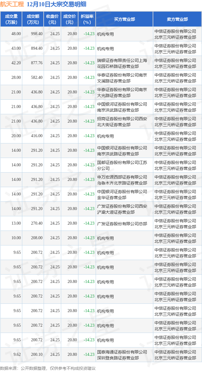 证券之星消息,12月10日航天工程发生大宗交易,交易数据如下: