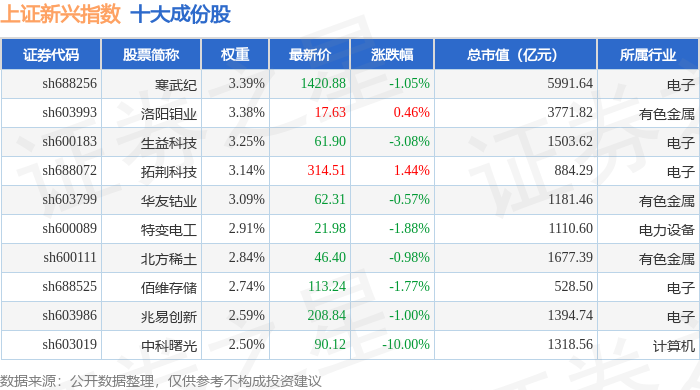上证新兴(000067)指数十大成份股详情如下: