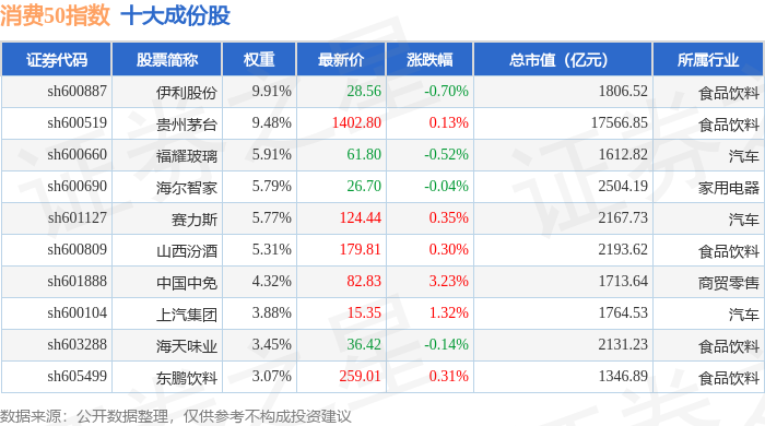 证券之星消息,12月10日,消费50(000126)指数报收于8234.75点,涨0.8%,成交309.47亿元,换手率1.0%。当日该指数成份股中,上涨的有40家,永辉超市以10.11%的涨幅领涨,下跌的有9家,中炬高新以1.26%的跌幅领跌。