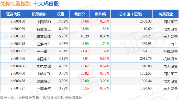 优势制造(000146)指数十大成份股详情如下: