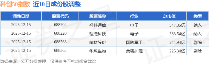 近10日内科创50(000688)指数成份股做了调整,新纳入了2只股票,剔除了2只股票。