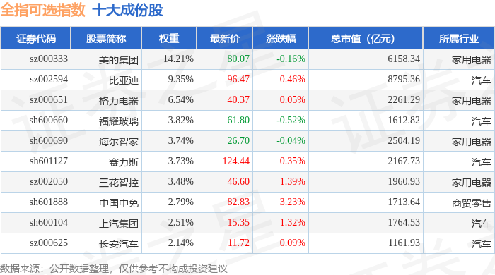 证券之星消息,12月10日,全指可选(000989)指数报收于5455.56点,涨0.77%,成交554.42亿元,换手率1.4%。当日该指数成份股中,上涨的有75家,永辉超市以10.11%的涨幅领涨,下跌的有32家,奋达科技以2.97%的跌幅领跌。