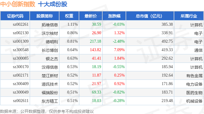 证券之星消息,12月10日,中小创新(399015)指数报收于2888.42点,涨0.4%,成交1761.05亿元,换手率3.0%。当日该指数成份股中,上涨的有267家,信邦制药以10.08%的涨幅领涨,下跌的有220家,天源迪科以14.97%的跌幅领跌。