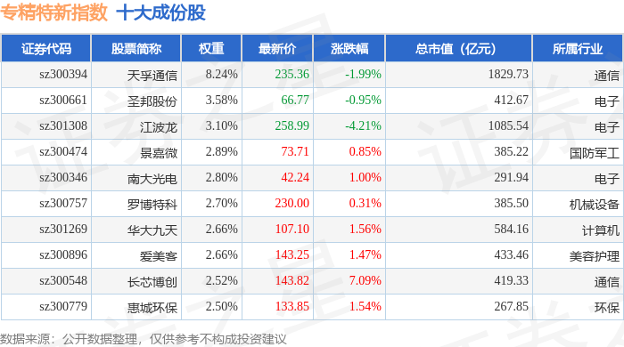 近10日内专精特新(399267)指数成份股做了调整,新纳入了10只股票,剔除了10只股票。