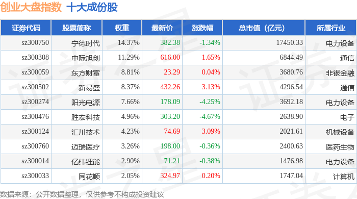 创业大盘(399293)指数十大成份股详情如下: