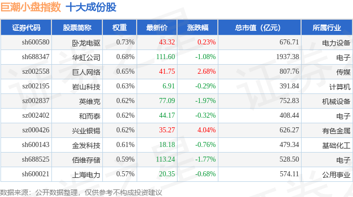 近10日内巨潮小盘(399316)指数成份股做了调整,新纳入了50只股票。