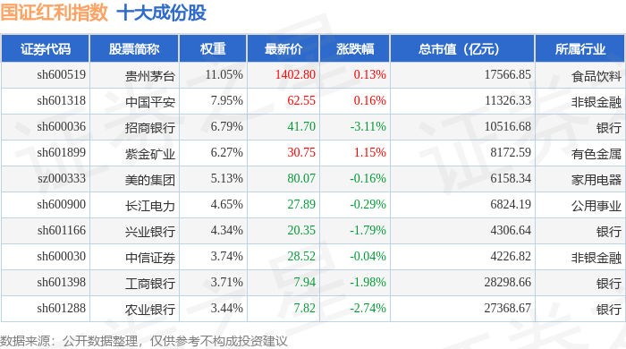 证券之星消息,12月10日,国证红利(399321)指数报收于7649.27点,跌0.39%,成交606.26亿元,换手率0.28%。当日该指数成份股中,上涨的有24家,万科A以10.06%的涨幅领涨,下跌的有25家,招商银行以3.11%的跌幅领跌。