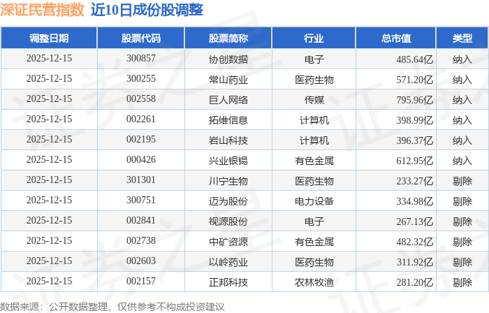 近10日内深证民营(399337)指数成份股做了调整,新纳入了6只股票,剔除了6只股票。