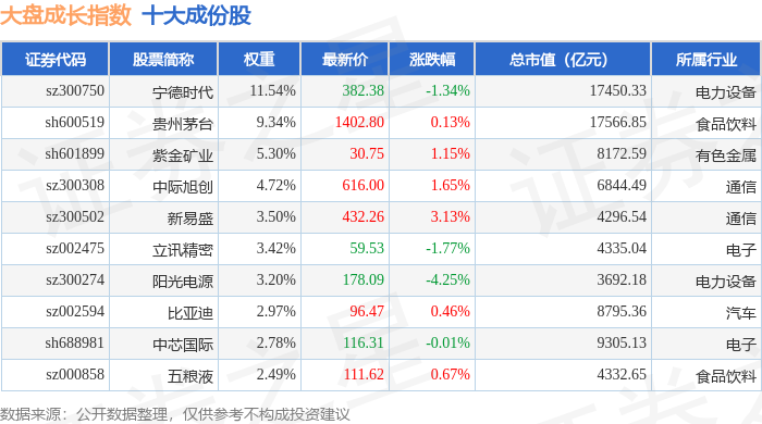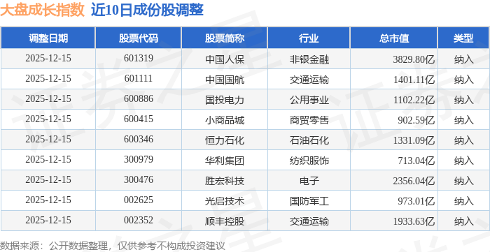 近10日内大盘成长(399372)指数成份股做了调整,新纳入了9只股票。