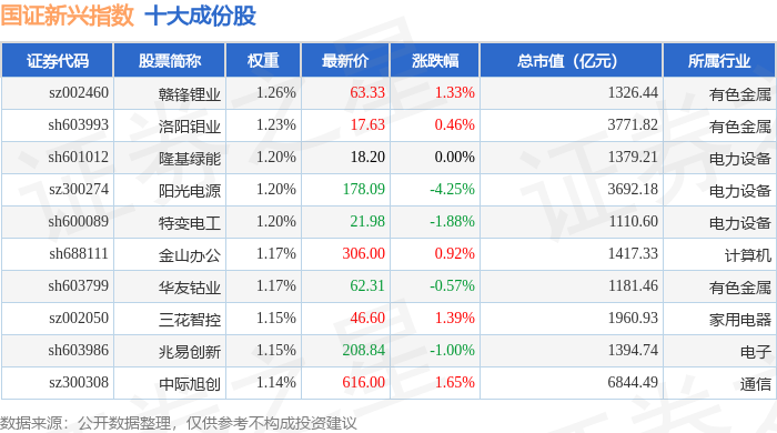 国证新兴(399392)指数十大成份股详情如下: